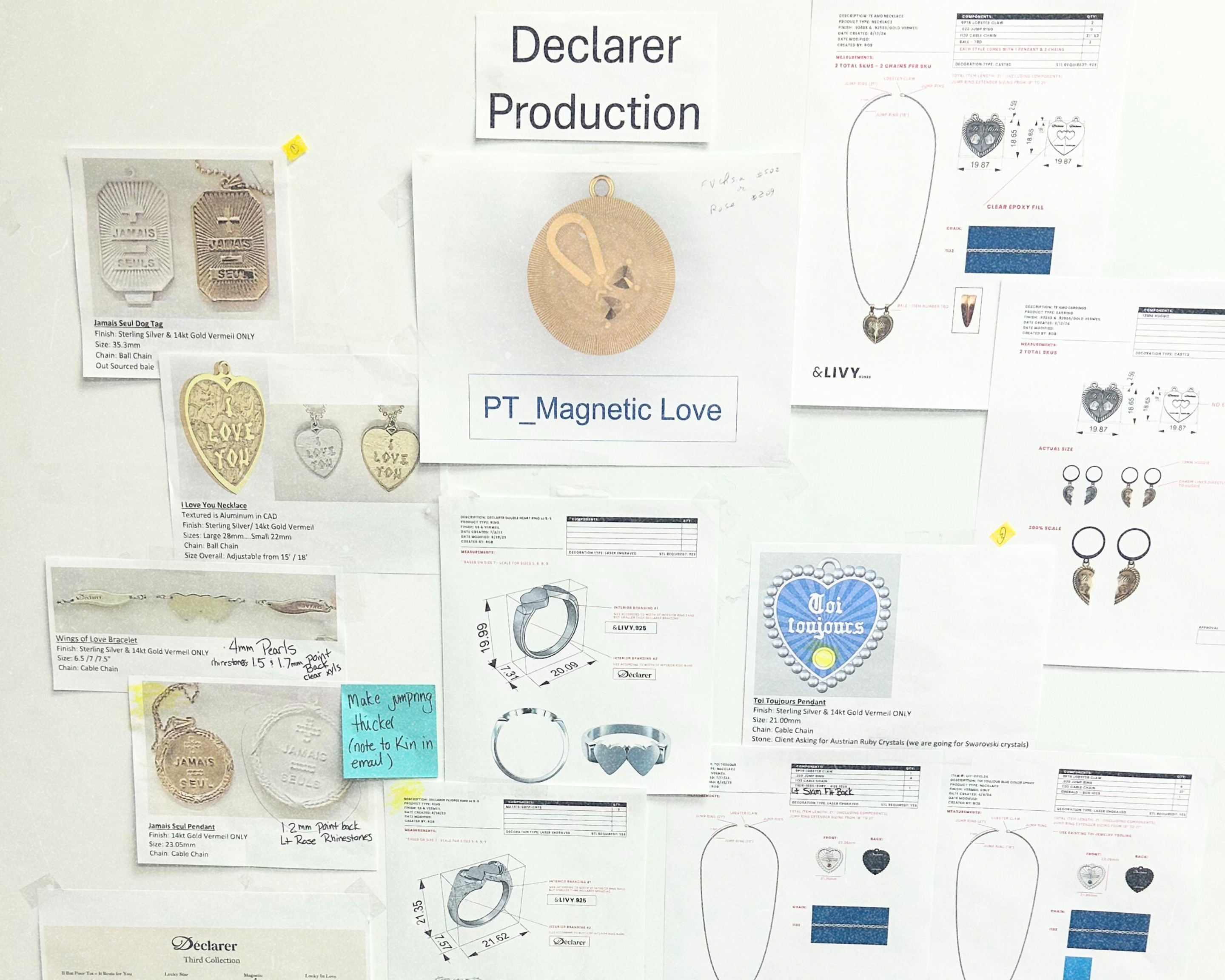 We introduced Déclarer with an intimate friends-and-family event at our founder’s home in Los Angeles. It was cozy, chaotic, and everything we hoped it would be. Our first orders shipped, our site went live, and suddenly this thing we had been dreaming about was real. The pieces weren’t perfect yet, but the intention was clear: we set out to make jewelry that meant something. Inspired by vintage declarations of love, we wanted each piece to feel like a modern heirloom.
